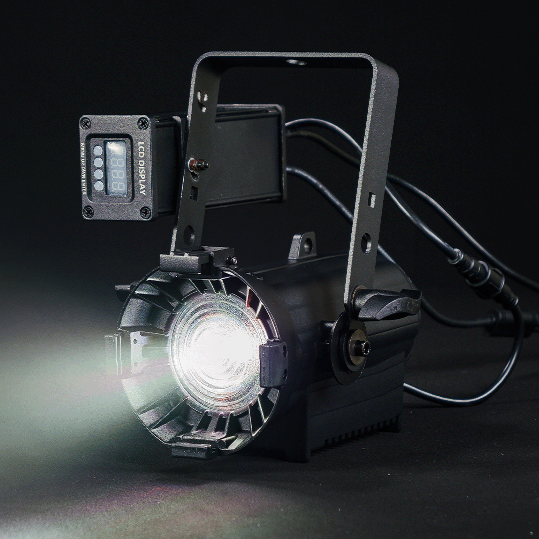 The Fresnel Mini utilizes a 60 watt COB LED which provides a clean and rich color mixing light output. Whether you need a splash of color or a specific white temperature, your stage or video needs will be well fulfilled. The Fresnel Mini is perfect for any show, event or even for displays in a museum or galleries.