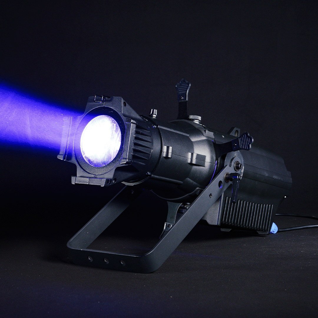 The Stingray Profile Cast RGBW boasts a powerful 200W COB LED with high CRI, delivering deep primary colors and even color mixing. It offers variable white temperature and precise beam control with interchangeable lenses. Controlled via DMX for ease of use, it is ideal for public spaces, classrooms, studios, and more.