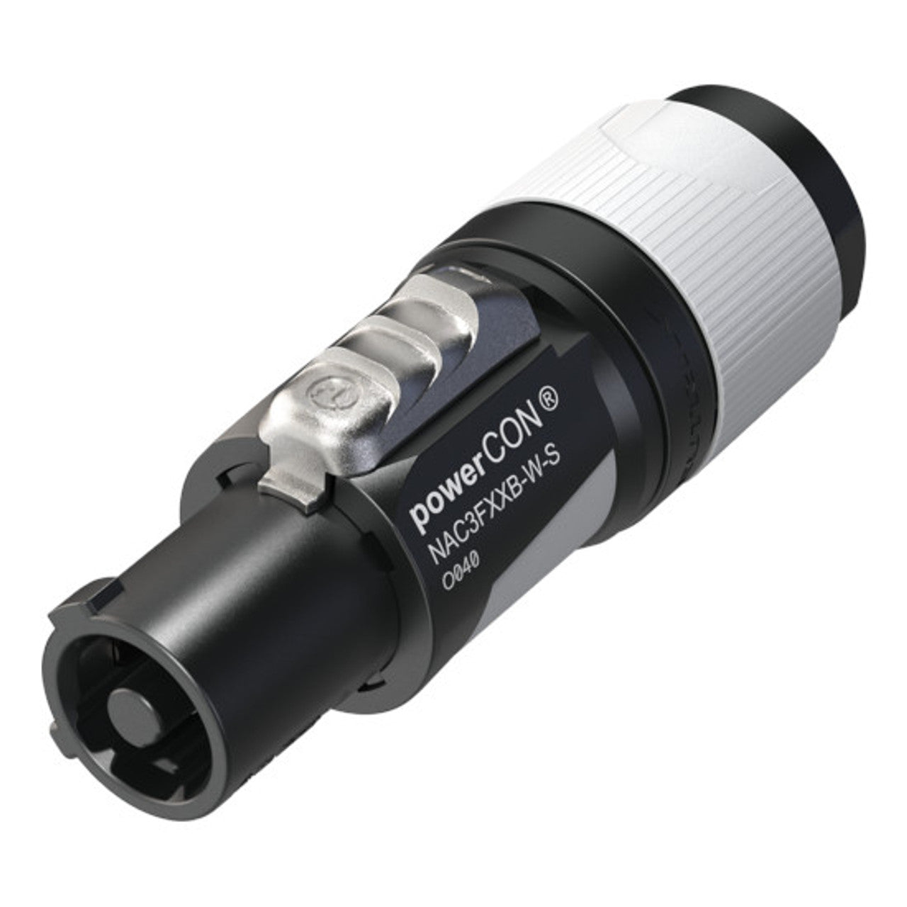The Neutrik powerCON FXXA/FXXB is a single-phase (3 conductor) lockable power connector with Circuit Breaking Capability when mated with powerCON XX Series receptacles. This connector is keyed and color-coded grey for power out. It is designed for appliance couplers where a very rugged solution in combination with a locking device is needed to guarantee a safe power connection. This connector is compatible with cable diameters between 6 - 12 mm.